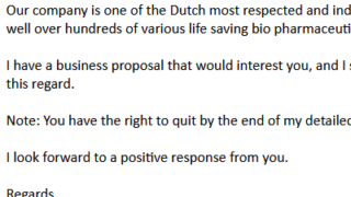 外国から迷惑メール【Dr.Breine】ドクターブレインからのメールは100%スパム Hello, I work with one of the leading【Business-Proposal info@】