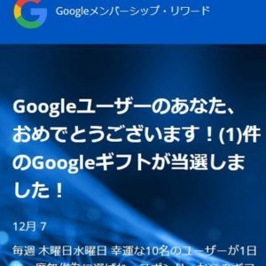 (1)件のGoogleギフトが当選しました!
