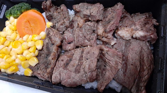 今回購入したのはステーキ重と国産リブロース重の2種類。