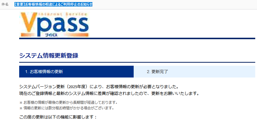 などのVpassを名乗るメールが届いたらご用心