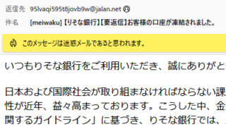 【りそな銀行】【要返信】お客様の口座が凍結されました。と届いたら100%迷惑メール