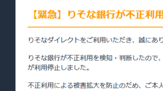 【緊急】りそな銀行が不正利用を検知 大手銀行を名乗る海外スパムに注意