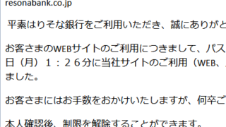 りそな銀行【緊急】当社サイトご利用制限のお知らせ resonabank.co.jp