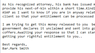 ‘SMITH & ASSOCIATES’スミスさんからメールが来たら要注意WARNING LATE EDWARD’S ESTATE,