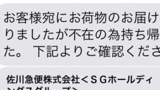 【佐川急便】ショートメールでの不在連絡はニセモノ【SMS】