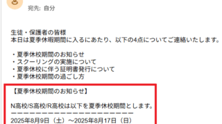 【N高等学校】通学コースの夏休み期間が分からない~矛盾メールの謎~