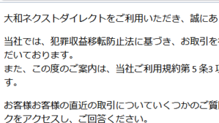 【大和ネクスト銀行】を名乗るメールが届いたら要注意