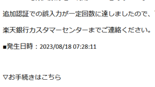 外国から迷惑メール注意【楽天銀行】事務局からのお知らせ【最終警告】楽天銀行からの緊急の連絡
