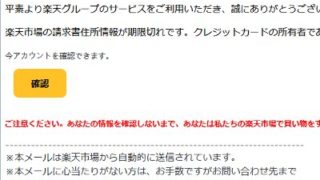 外国から迷惑メール【楽天市場】会員支払い情報は期限切れです 楽天会員規約に基づいてさっそく利用を停止する措置を取った。