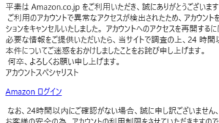 外国から迷惑メール【Amazon】お客様のアカウント認証に関する重要なお知らせ