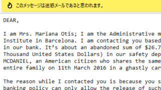 【迷惑メール情報】件名:Hello.【差出人:Mrs. Mariana Otis】マリアナ・オーティス夫人