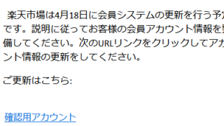 勧誘 悪質 迷惑 ネット[楽天] 会員情報変更のお知らせ 楽天を装うメールに要注意